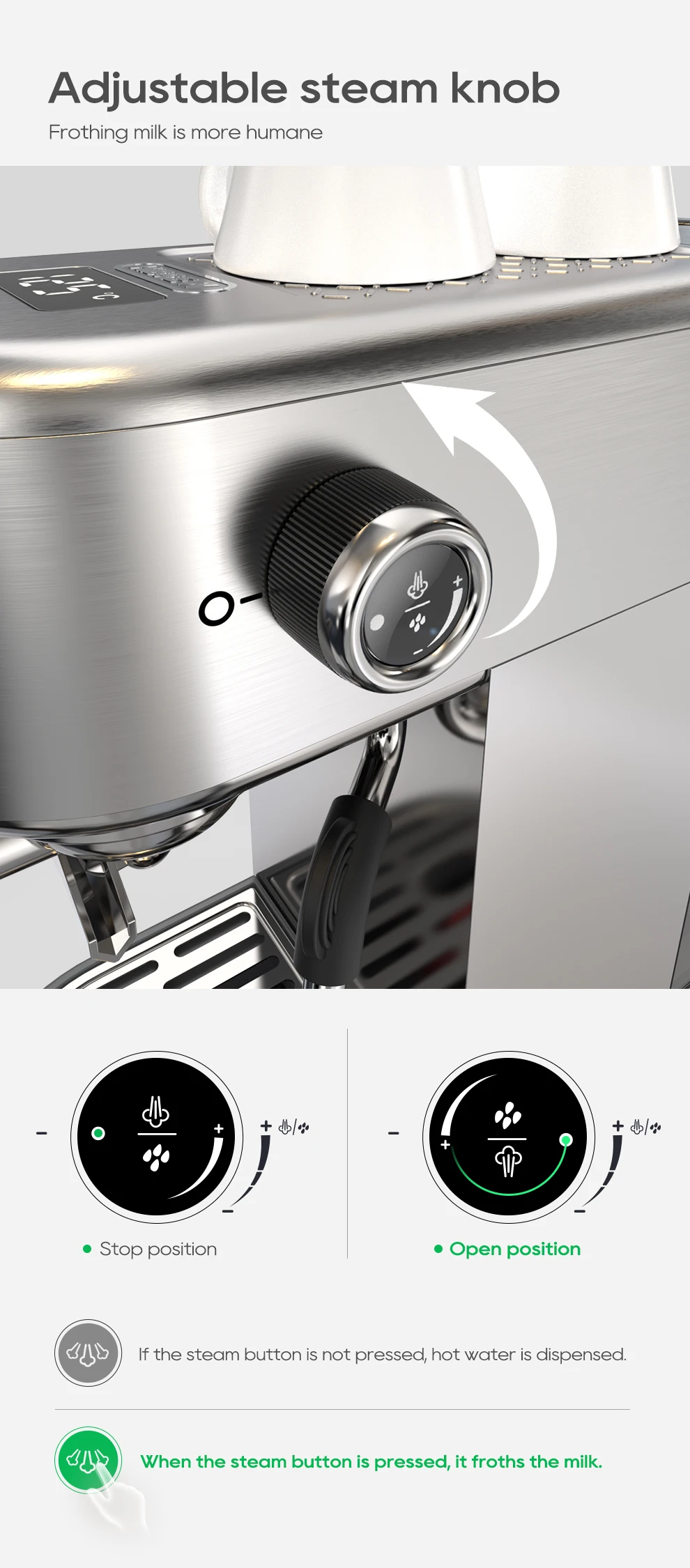 • Professional 20-Bar Pressure: Achieve optimal extraction for rich crema and robust flavor.